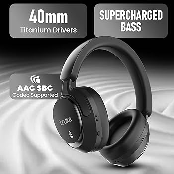truke Newly Launch Aura Bass Over The Ear Headphone with 50H of Playtime, 40mm Titanium Drivers, Dual Pairing Headset, 40ms Ultra Low Latency, ENC, Premium Design & Comfort (Black)