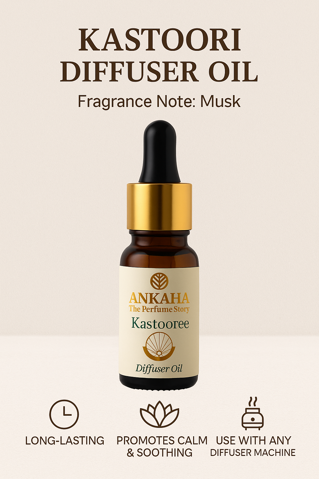 Immerse yourself in the enchanting aroma of Kastooree, a signature diffuser oil from Ankaha that brings the mystique of ancient olfactory traditions into your space. This 10ml amber-glass bottle houses a luxurious blend inspired by the timeless allure of Musk, known for its warm, deep, and sensual fragrance.